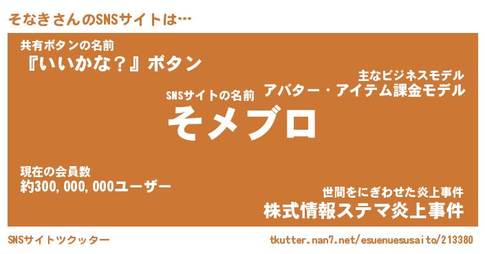 | ポケモン風あだ名 | 『ソナチュウ』『ソナキダネ』 |