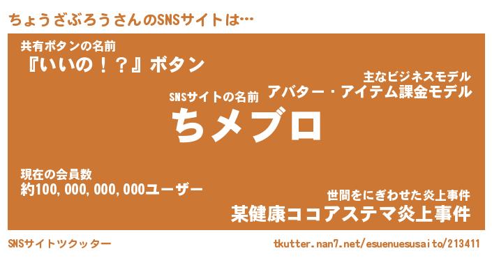 | 肩書あだ名 | 『ちょうざぶろうCEO』 |