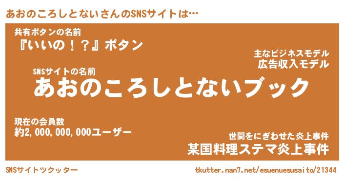 | 胡散臭い通販商品みたいなあだ名 | 『億万長者になれる霊験あらたかなお札…その名も「あおのころしとない」』 |