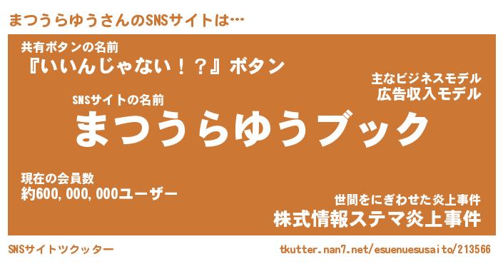 | 肩書あだ名 | 『まつうらゆう御曹司』 |