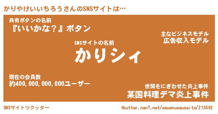 | 男性向けラノベタイトル風あだ名 | 『かりやけいいちろうの憂鬱』 |