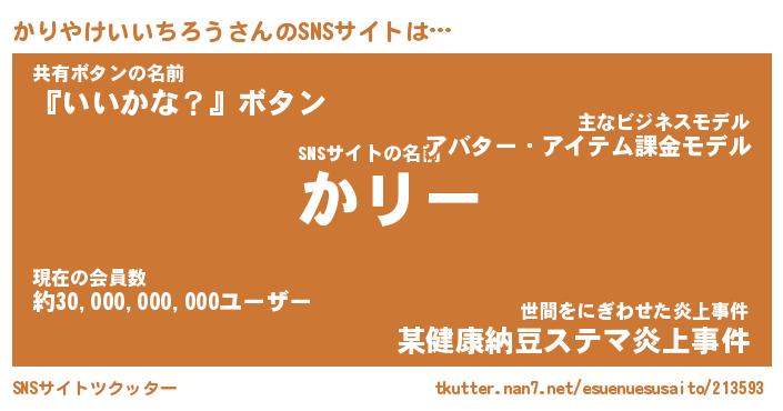 | 肩書あだ名 | 『かりやけいいちろう社長』 |