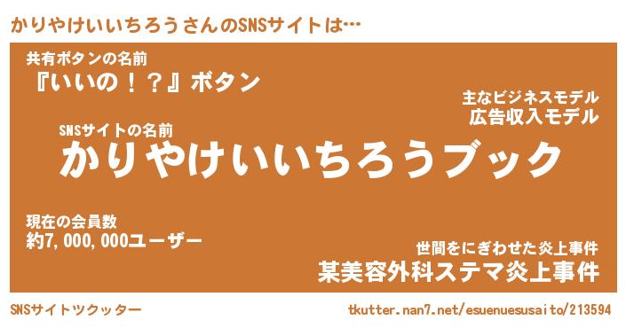 | 肩書あだ名 | 『かりやけいいちろう店長』 |