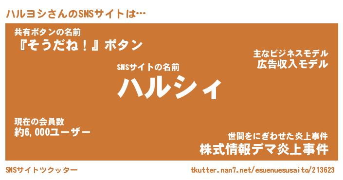 | 意味不明あだ名 | 『ペロリンハルヨシ』『永久保存ハルヨシ』 |