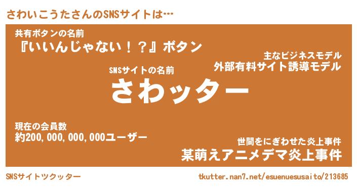 | 男性向けラノベタイトル風あだ名 | 『サワイコウタアートオンライン』 |