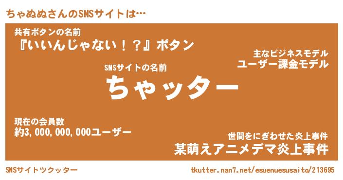 | 男性向けラノベタイトル風あだ名 | 『チャヌヌアートオンライン』 |