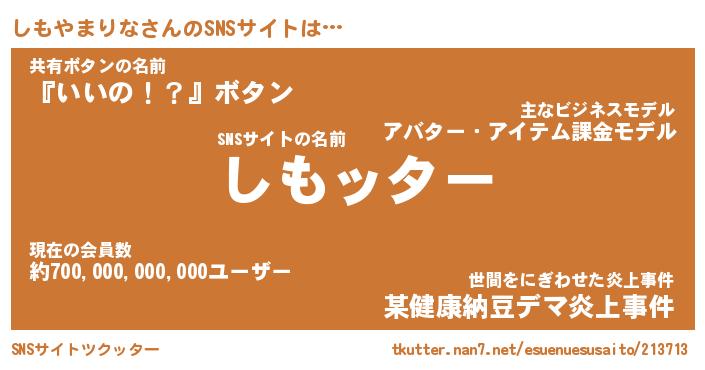 | 胡散臭い通販商品みたいなあだ名 | 『億万長者になれる水晶球…その名も「しもやまりな」』 |