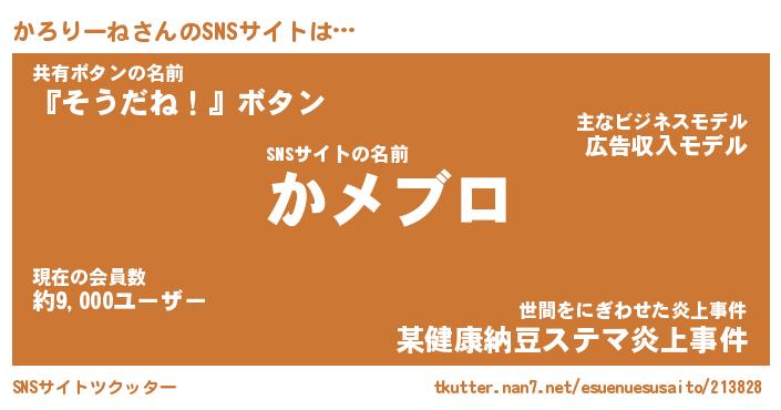 | ヘコむあだ名 | 『かろもー』『つくし』『かろを』 |