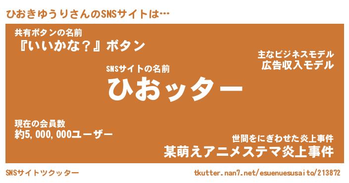 | 男性向けラノベタイトル風あだ名 | 『ヒオキユウリアートオンライン』 |