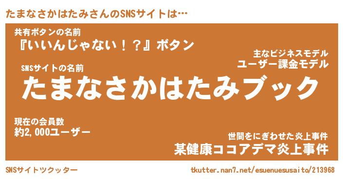 | 男性向けラノベタイトル風あだ名 | 『タマナサカハタミアートオンライン』 |