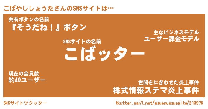 | ツイッター | こばやししょうたさんのツイッターID『neet_idle』 |