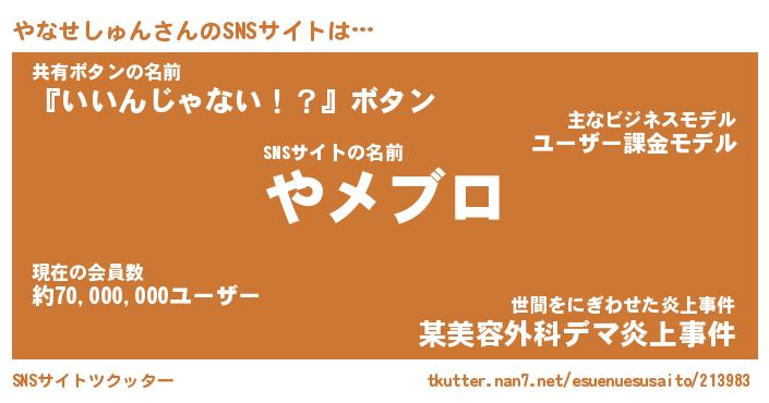 | 男性向けラノベタイトル風あだ名 | 『ヤナセシュンアートオンライン』 |