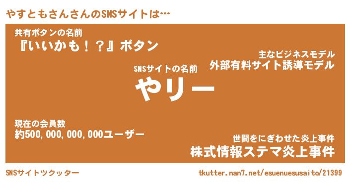 | 胡散臭い通販商品みたいなあだ名 | 『モテモテ間違いなし霊験あらたかなお札…その名も「やすともさん」』 |