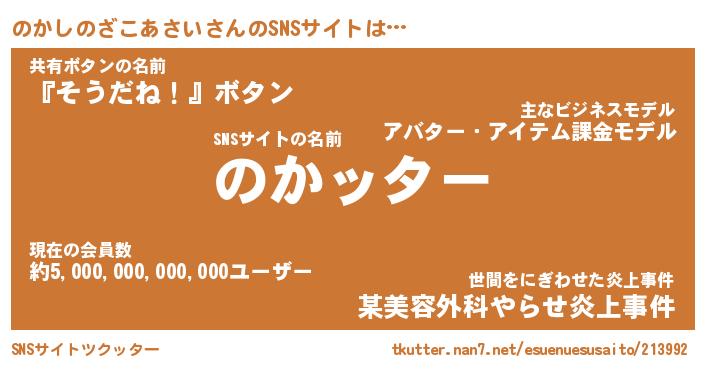| 男性向けラノベタイトル風あだ名 | 『ノカシノザコアサイアートオンライン』 |