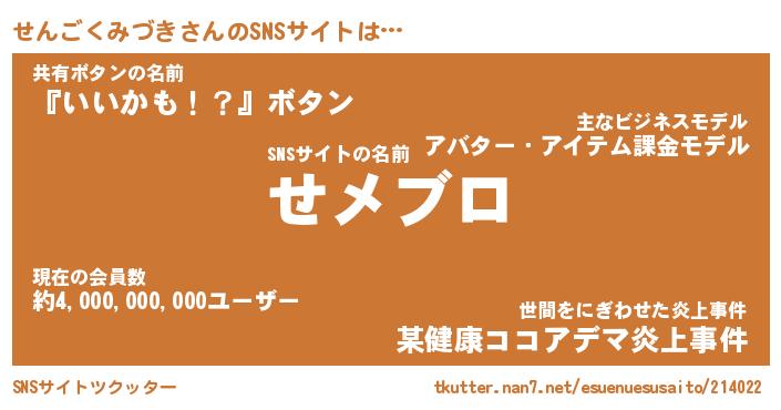 | ツイッター | せんごくみづきさんのツイッターID『dendenmushi_kun』 |