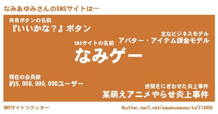 | 肩書あだ名 | 『なみあゆみ御曹司』『なみあゆみ大統領』 |