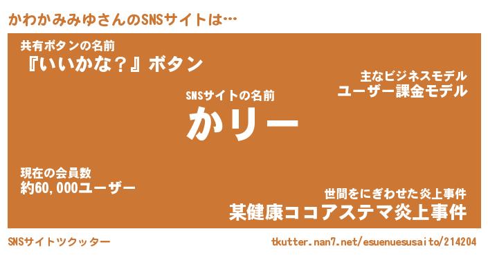 | 胡散臭い通販商品みたいなあだ名 | 『モテモテ間違いなし水晶球…その名も「かわかみみゆ」』 |
