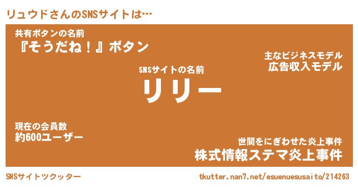 | 意味不明あだ名 | 『ペロリンリュウド』『永久保存リュウド』 |