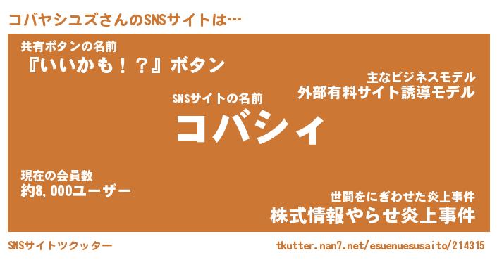 | ヘコむあだ名 | 『コバふぇ~』『なまこ酢』『コバお』 |