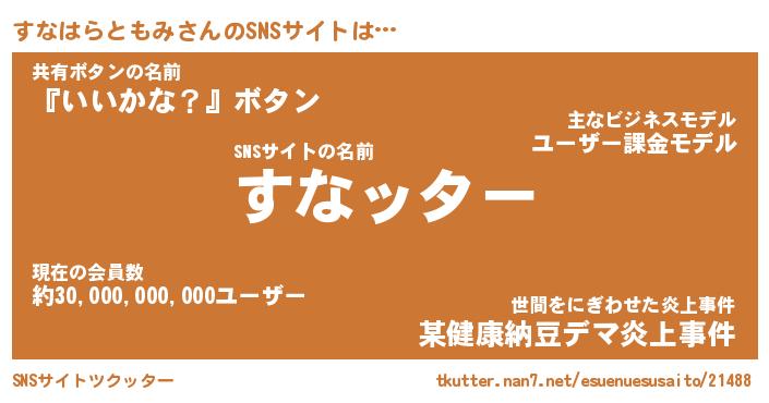 | 男性向けラノベタイトル風あだ名 | 『スナハラトモミアートオンライン』 |