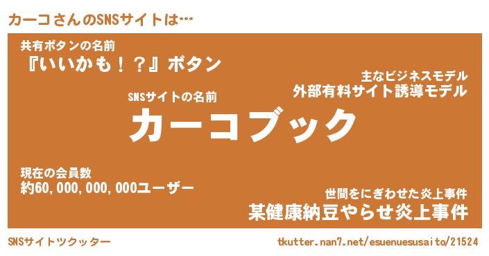 | ツイッター | カーコさんのツイッターID『namakemono_man』 |
