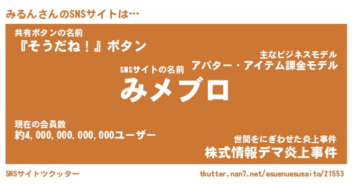 | 肩書あだ名 | 『みるん御曹司』『みるん国家主席』 |