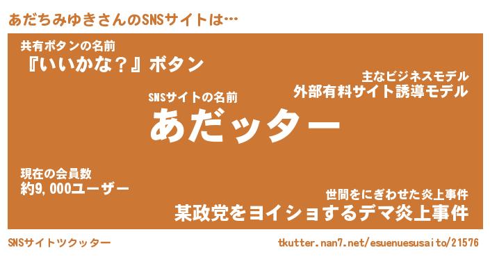 | 肩書あだ名 | 『あだちみゆき御曹司』 |