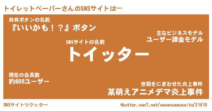 | 草はえルンゴwww …「ツクッター」 | 12月29日 07:12 |