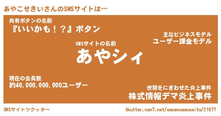 | 胡散臭い通販商品みたいなあだ名 | 『必ず成功する霊験あらたかなお札…その名も「あやこせきい」』 |