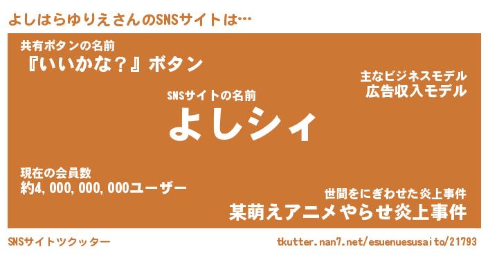 | 伝説のあだ名 | 『伝説の竜騎士よしはらゆりえ』 |