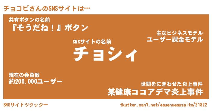 | ファンタジー風あだ名 | 『チョフェル』『エターナルチョコビー』 |