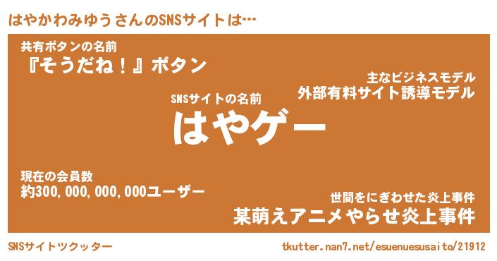 | 胡散臭い通販商品みたいなあだ名 | 『必ず成功する霊験あらたかなお札…その名も「はやかわみゆう」』 |
