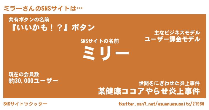 | ヘコむあだ名 | 『ミラにー』『酢こんぶ』『ミラ太郎』 |