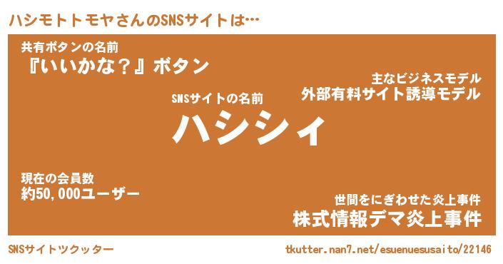 | 肩書あだ名 | 『ハシモトトモヤ店長』 |