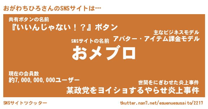 | 肩書あだ名 | 『おがわちひろCEO』『おがわちひろ大統領』 |