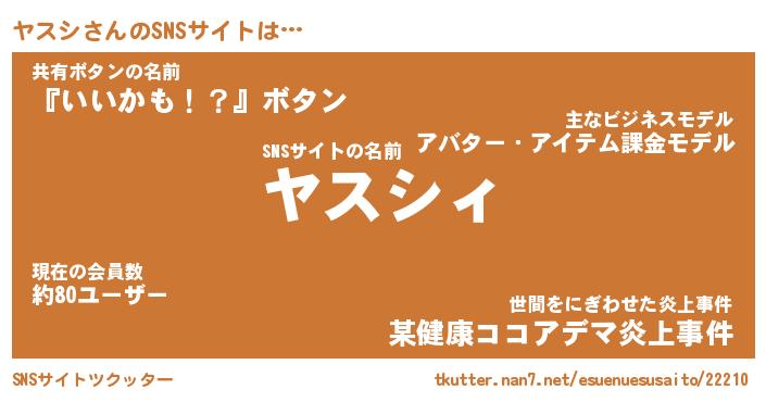 | 肩書あだ名 | 『ヤスシCEO』『ヤスシ大統領』 |