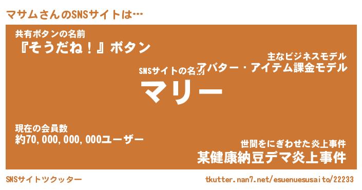 | 肩書あだ名 | 『マサムCEO』『マサム大統領』 |
