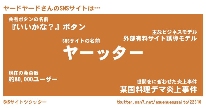 | 男性向けラノベタイトル風あだ名 | 『ヤードヤードアートオンライン』 |