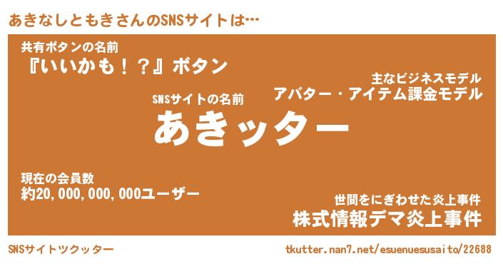 | 肩書あだ名 | 『あきなしともきCEO』 |