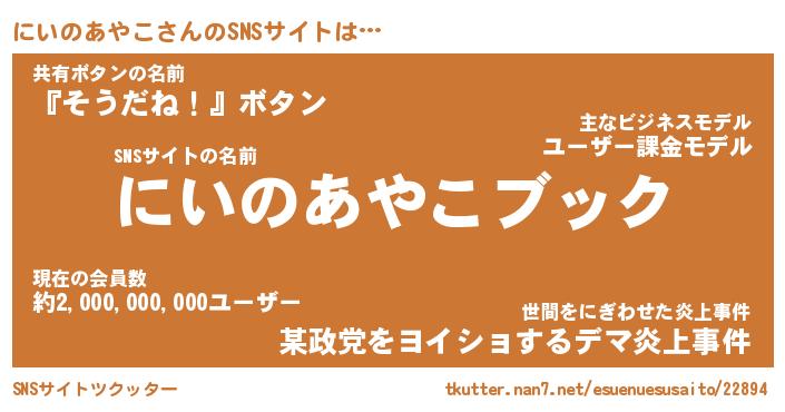 | 肩書あだ名 | 『にいのあやこ御曹司』 |