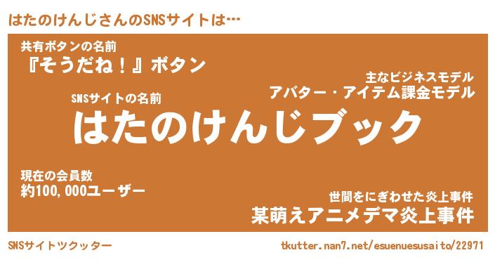 | 肩書あだ名 | 『はたのけんじCEO』『はたのけんじ大統領』 |