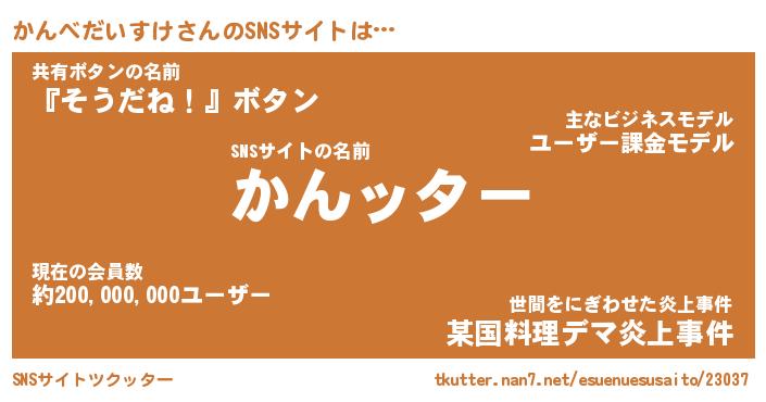 | 胡散臭い通販商品みたいなあだ名 | 『億万長者になれるブレスレット…その名も「かんべだいすけ」』 |