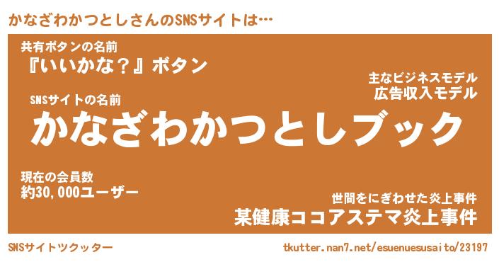 | 肩書あだ名 | 『かなざわかつとし店長』 |