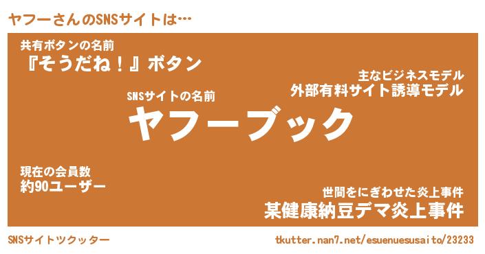 | ヘコむあだ名 | 『ヤフにゅー』『牛乳』『ヤフっぺ』 |