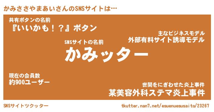 | 胡散臭い通販商品みたいなあだ名 | 『億万長者になれるブレスレット…その名も「かみささやまあい」』 |