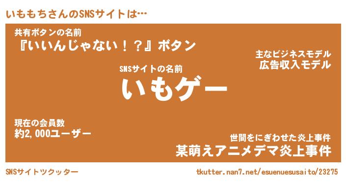 | ファンタジー風あだ名 | 『イモフェル』『エターナルイモモチー』 |