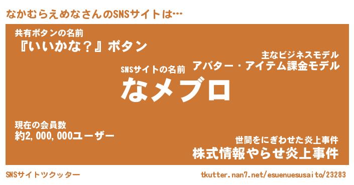 | ヒーロー風カッコイイあだ名 | 『スーパーナカムラエメナ』 |