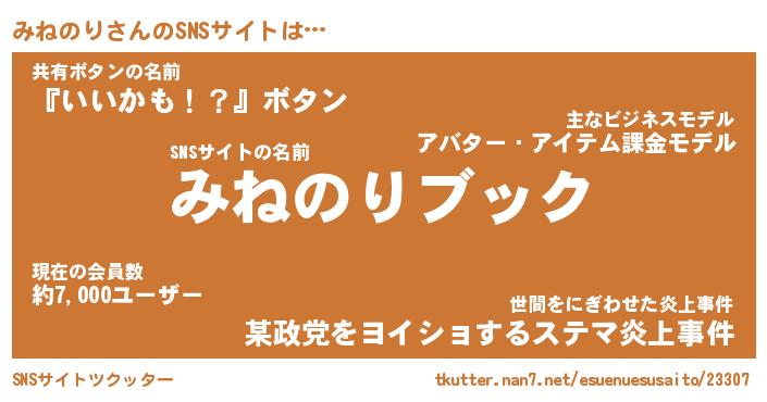 | 意味不明あだ名 | 『ペロリンみねのり』『永久保存みねのり』 |