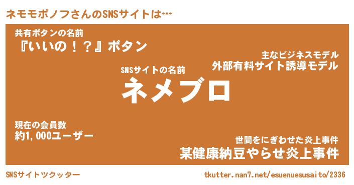| 男性向けラノベタイトル風あだ名 | 『ネモモポノフアートオンライン』 |