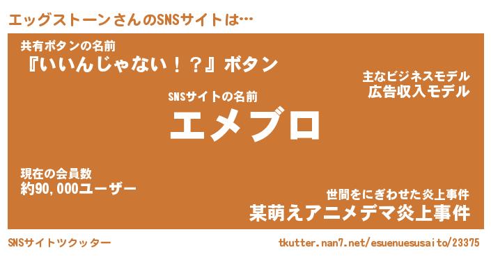 | 男性向けラノベタイトル風あだ名 | 『エッグストーンアートオンライン』 |